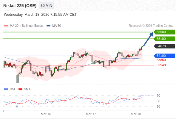 在 54100 之上,看涨,目标价位为 55100 ,然后为 55500 。