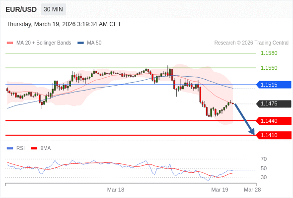 在 1.1515 之下,看跌,目标价位为 1.1440 ,然后为 1.1410 。