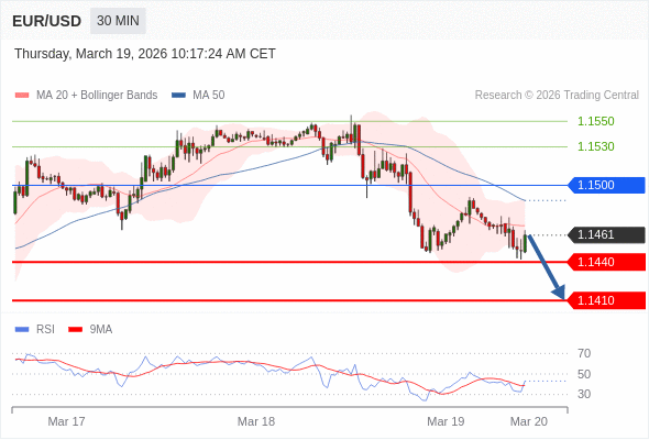 在 1.1500 之下,看跌,目标价位为 1.1440 ,然后为 1.1410 。