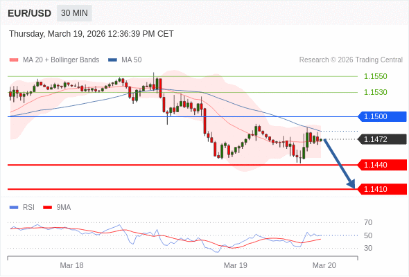 交易策略: 在 1.1500 之下,看跌,目标价位为 1.1440 ,然后为 1.1410 。