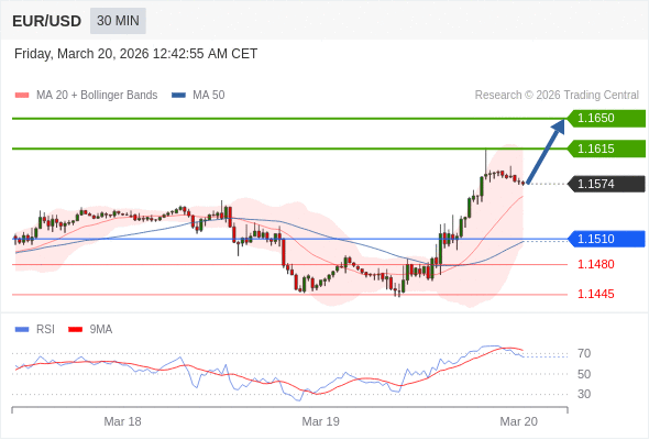 在 1.1510 之上,看涨,目标价位为 1.1615 ,然后为 1.1650 。