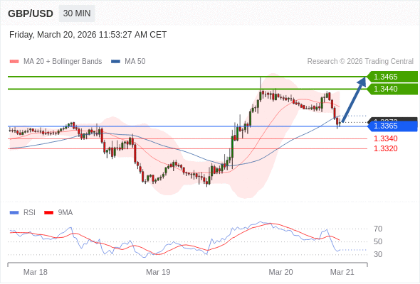 在 1.3365 之上,看涨,目标价位为 1.3440 ,然后为 1.3465 。