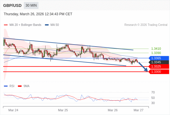 英镑/美元 当日内: 短期关键阻力位在1.3365。