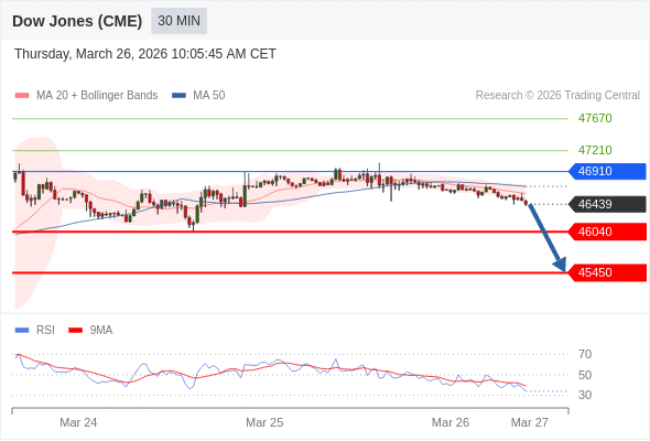 在 46910 之下,看跌,目标价位为 46040 ,然后为 45450 。