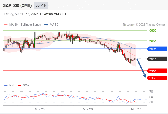 美国标普500指数期货 (M6) 当日内: 目标位为6485。