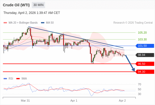 交易策略: 在 101.50 之下,看跌,目标价位为 96.50 ,然后为 94.30 。