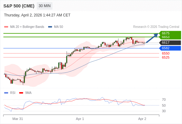 在 6582 之上,看涨,目标价位为 6653 ,然后为 6675 。