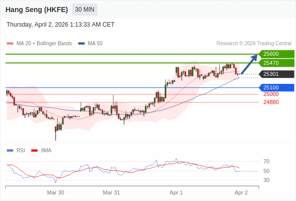 在 25100 之上,看涨,目标价位为 25470 ,然后为 25600 。
