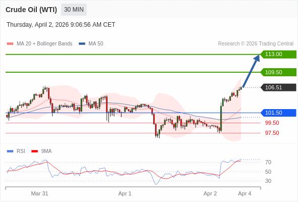 在 101.50 之上,看涨,目标价位为 109.50 ,然后为 113.00 。