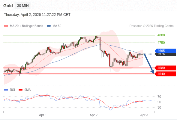 在 4695 之下,看跌,目标价位为 4580 ,然后为 4540 。