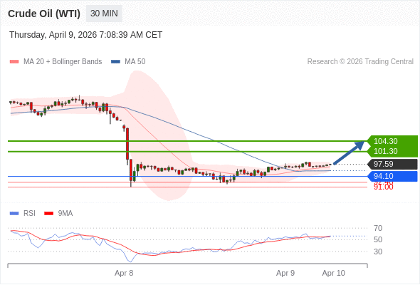 在 94.10 之上,看涨,目标价位为 101.30 ,然后为 104.30 。