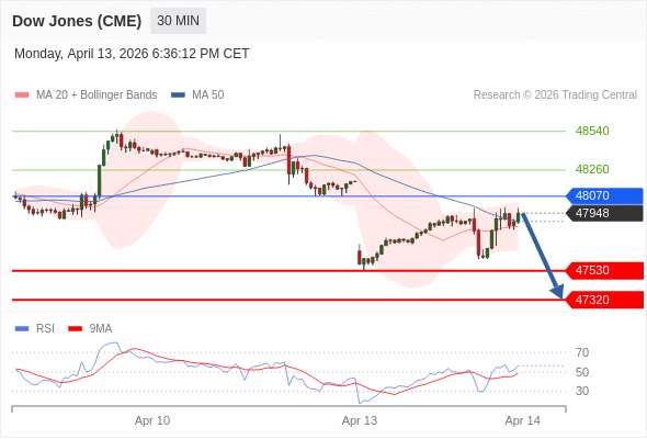 在 48070 之下,看跌,目标价位为 47530 ,然后为 47320 。