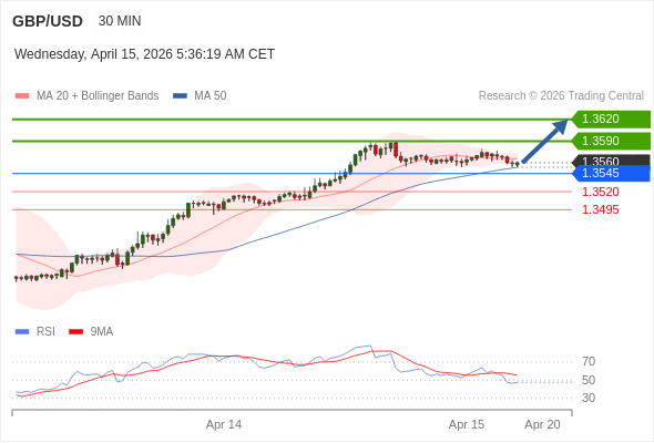 在 1.3545 之上,看涨,目标价位为 1.3590 ,然后为 1.3620 。