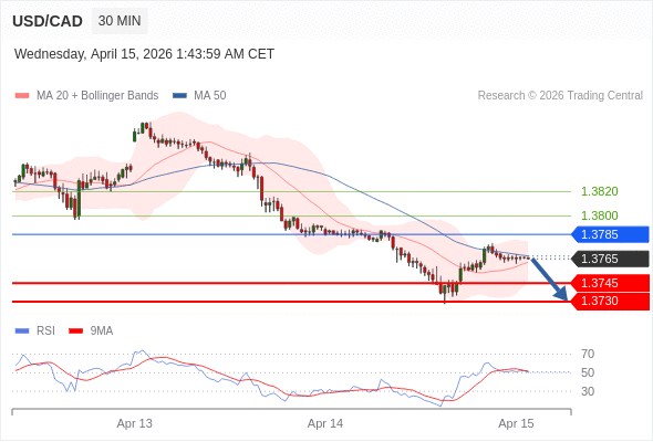 在 1.3785 之下,看跌,目标价位为 1.3745 ,然后为 1.3730 。