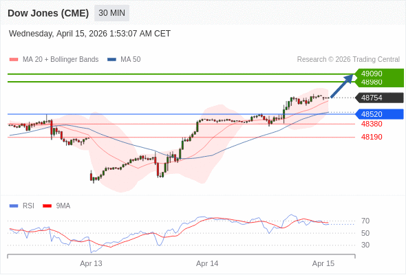 在 48520 之上,看涨,目标价位为 48980 ,然后为 49090 。
