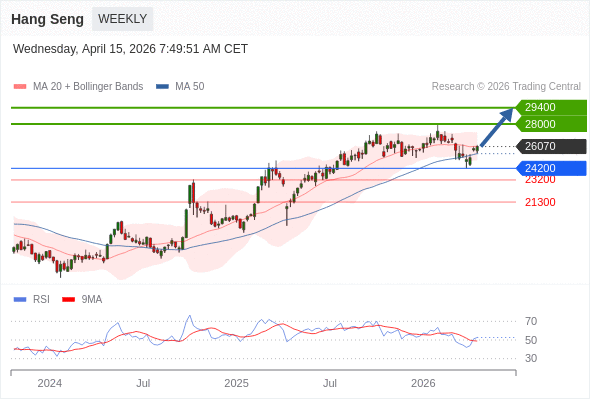 恒生指数 中期: 反转向上。