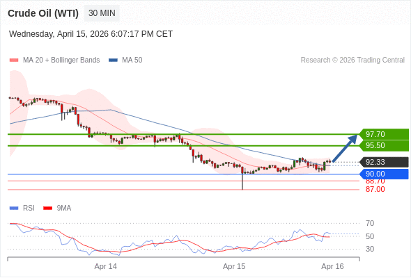 交易策略: 在 90.00 之上,看涨,目标价位为 95.50 ,然后为 97.70 。