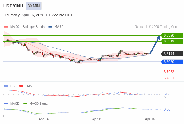 交易策略: 看涨,当 6.8080 为支撑位,目标定在6.8390。