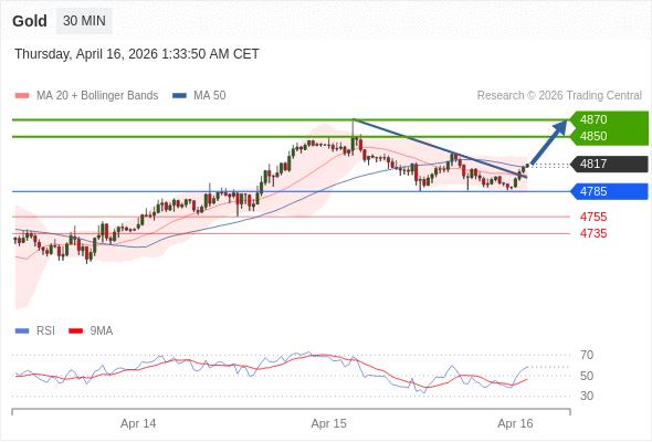 在 4785 之上,看涨,目标价位为 4850 ,然后为 4870 。