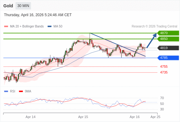 在 4785 之上,看涨,目标价位为 4850 ,然后为 4870 。