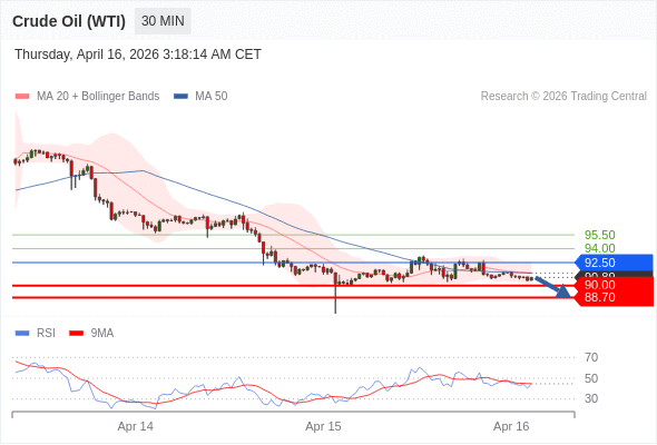 在 92.50 之下,看跌,目标价位为 90.00 ,然后为 88.70 。