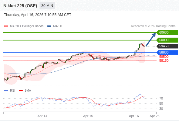在 58880 之上,看涨,目标价位为 60000 ,然后为 60680 。