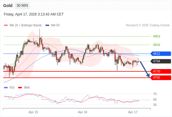 在 4812 之下,看跌,目标价位为 4770 ,然后为 4755 。