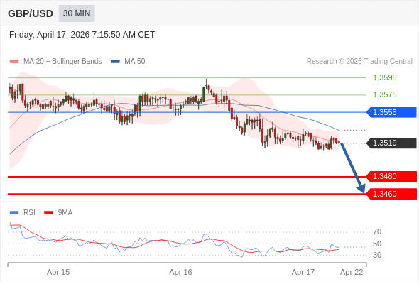 在 1.3555 之下,看跌,目标价位为 1.3480 ,然后为 1.3460 。