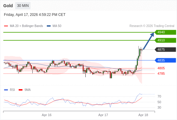 在 4835 之上,看涨,目标价位为 4910 ,然后为 4940 。