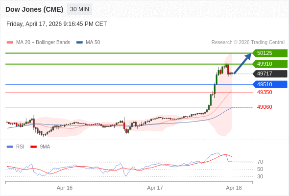 在 49510 之上,看涨,目标价位为 49910 ,然后为 50125 。