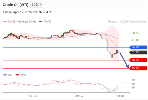 交易策略: 在 84.10 之下,看跌,目标价位为 78.70 ,然后为 75.20 。