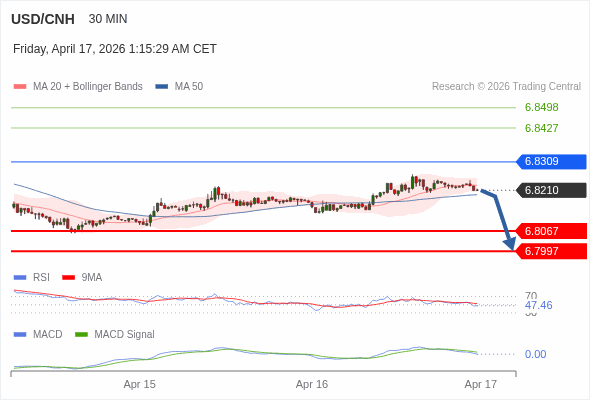 交易策略: 逐渐下跌,当 6.8309 阻碍上行,则 6.7997 为目标位。