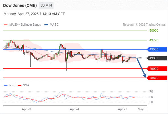 在 49550 之下,看跌,目标价位为 49090 ,然后为 48870 。
