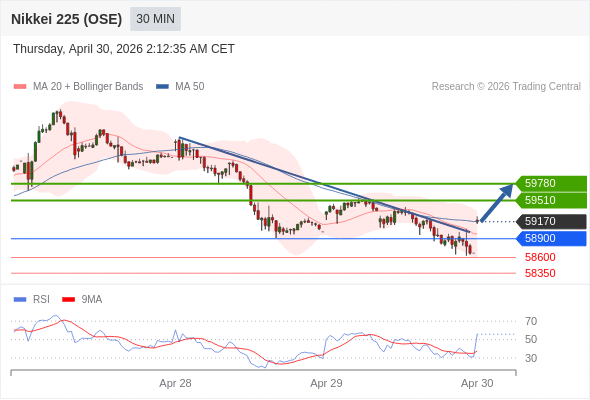 在 58900 之上,看涨,目标价位为 59510 ,然后为 59780 。