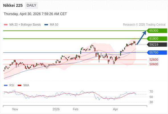 Nikkei 225 短线: 看涨。