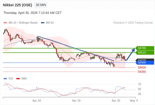 在 58900 之上,看涨,目标价位为 59510 ,然后为 59780 。