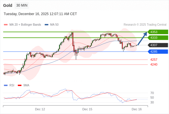 在 4285 之上,看涨,目标价位为 4333 ,然后为 4353 。
